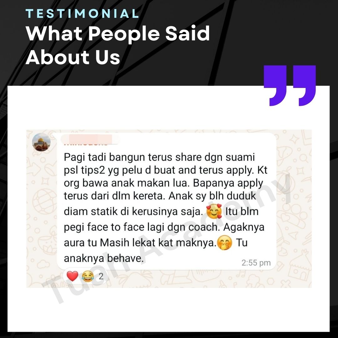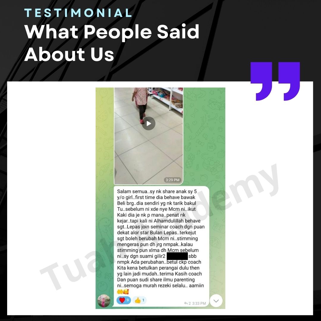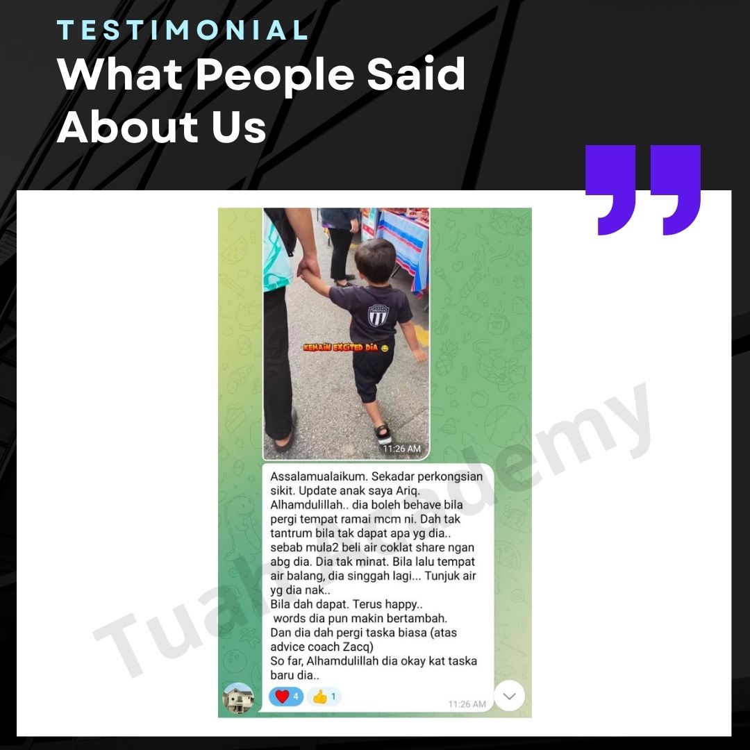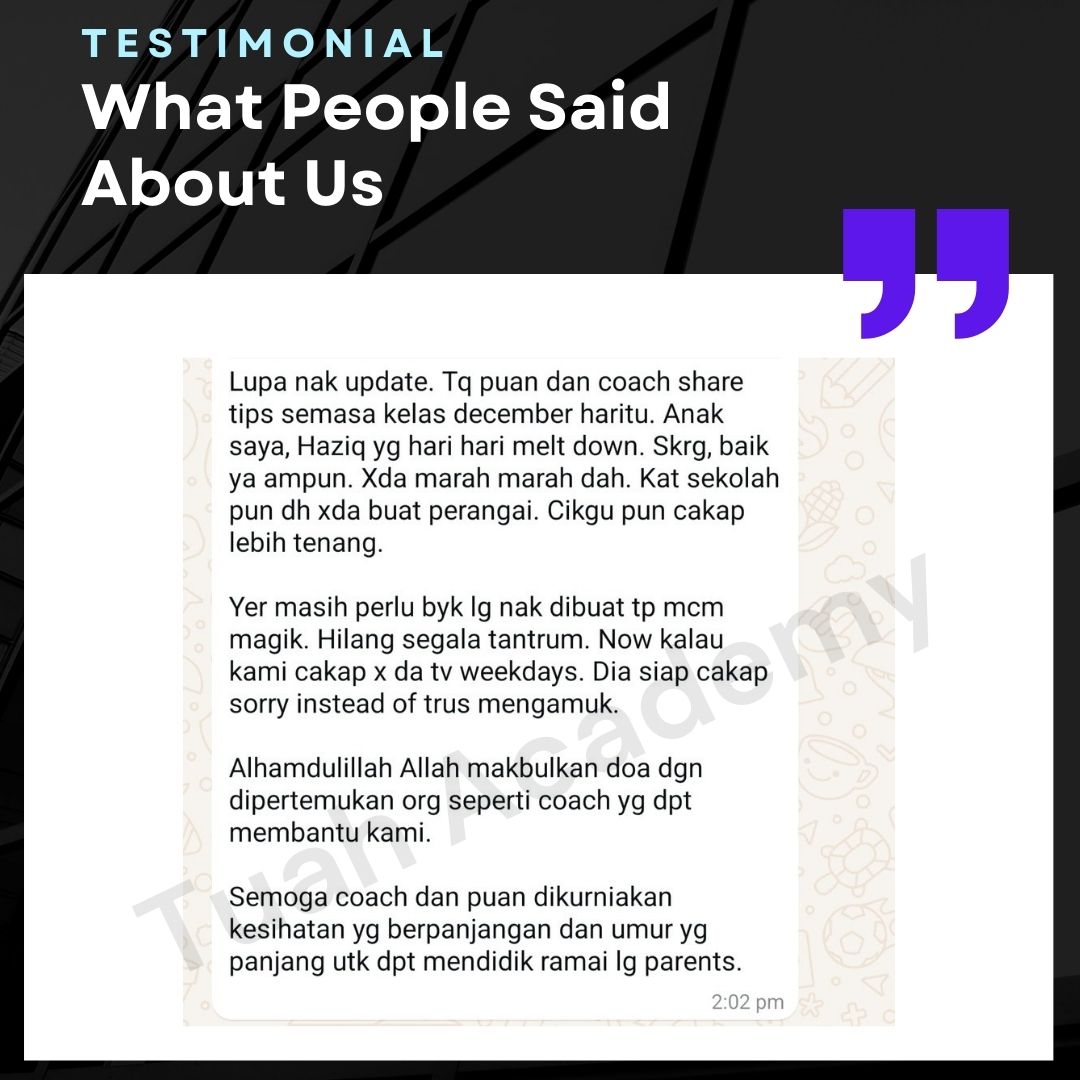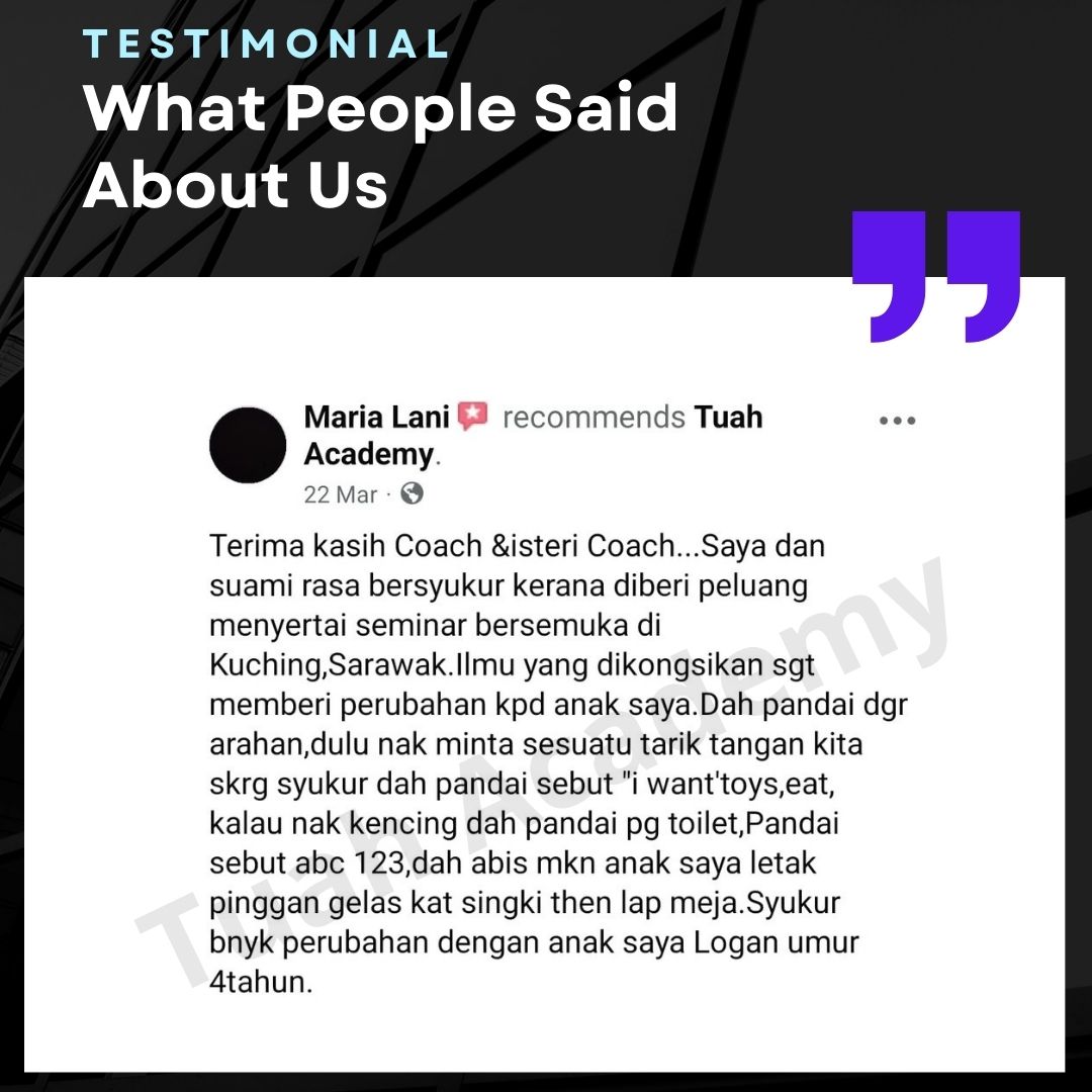 Saya Ingin Berkongsi Testimoni Real Stories, Real Change: Story Ibu Bapa ! Dari keliru kepada yakin, dari buntu kepada bertindak. Ini kisah sebenar ibu bapa yang telah menyertai Tuah Academy dan melihat perubahan dalam anak mereka. Lebih peluang, lebih manfaat Jadi ahli NGO kami. Borang diskaun sehingga 80% Isi di sini!