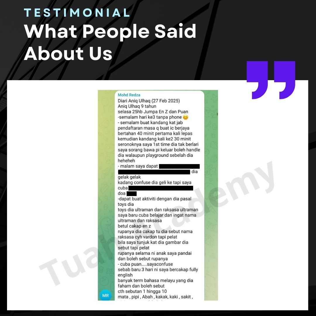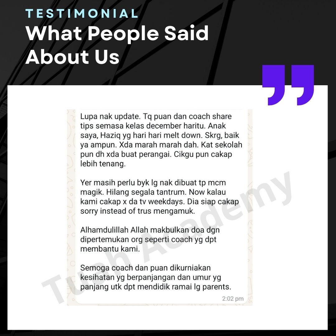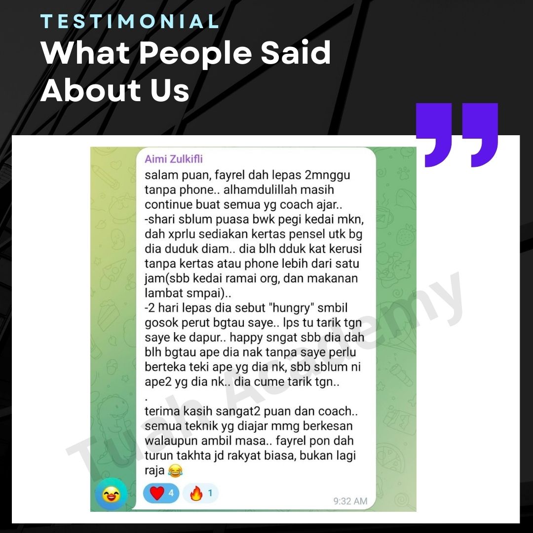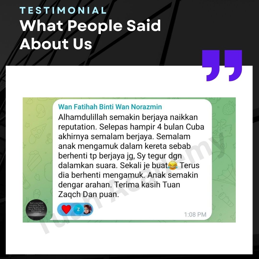 Saya Ingin Berkongsi Testimoni Real Stories, Real Change: Story Ibu Bapa ! Dari keliru kepada yakin, dari buntu kepada bertindak. Ini kisah sebenar ibu bapa yang telah menyertai Tuah Academy dan melihat perubahan dalam anak mereka. Lebih peluang, lebih manfaat Jadi ahli NGO kami. Borang diskaun sehingga 80% Isi di sini!