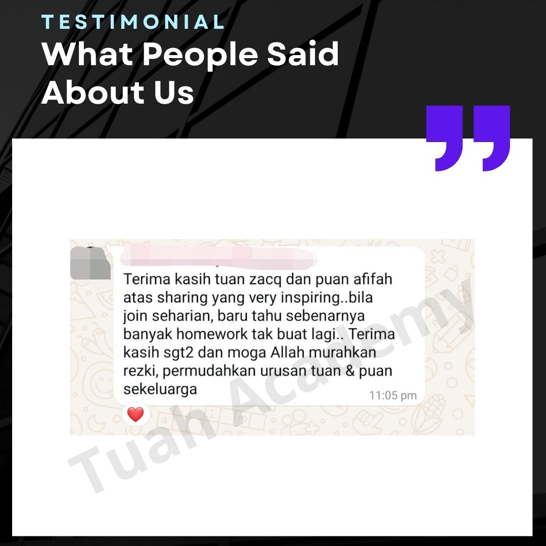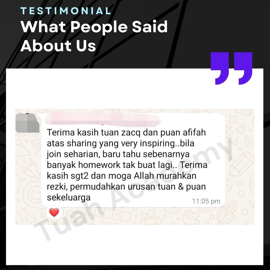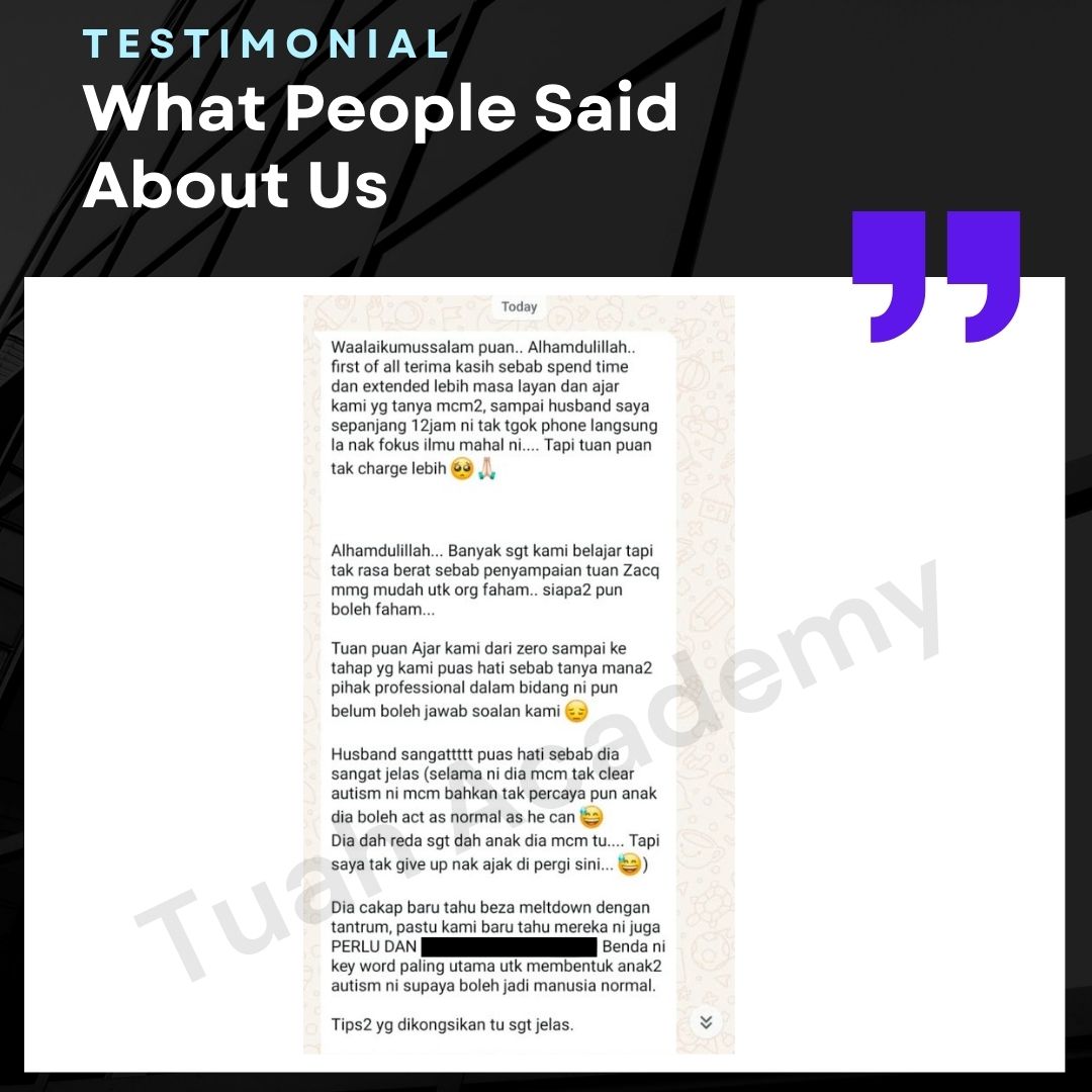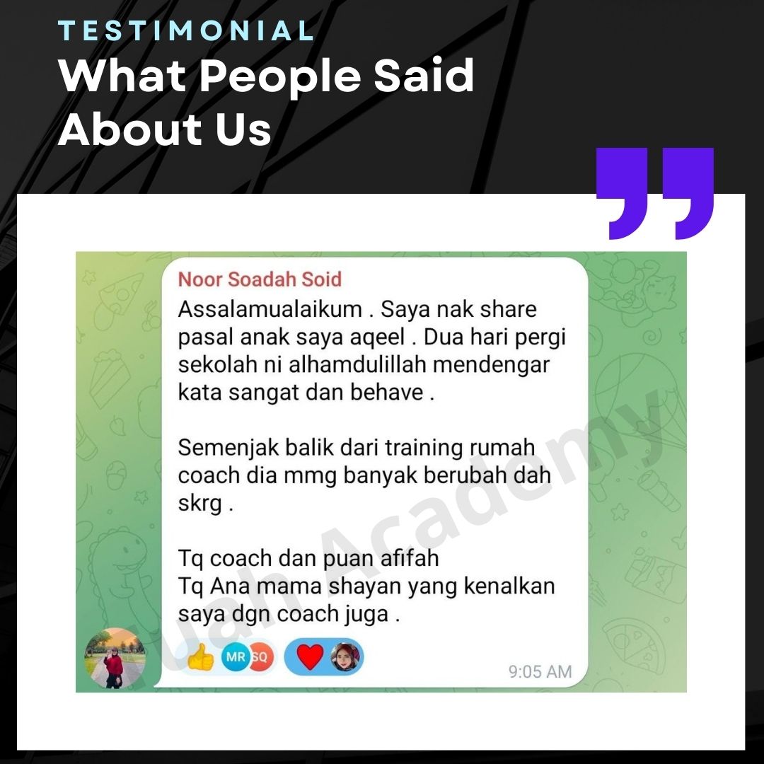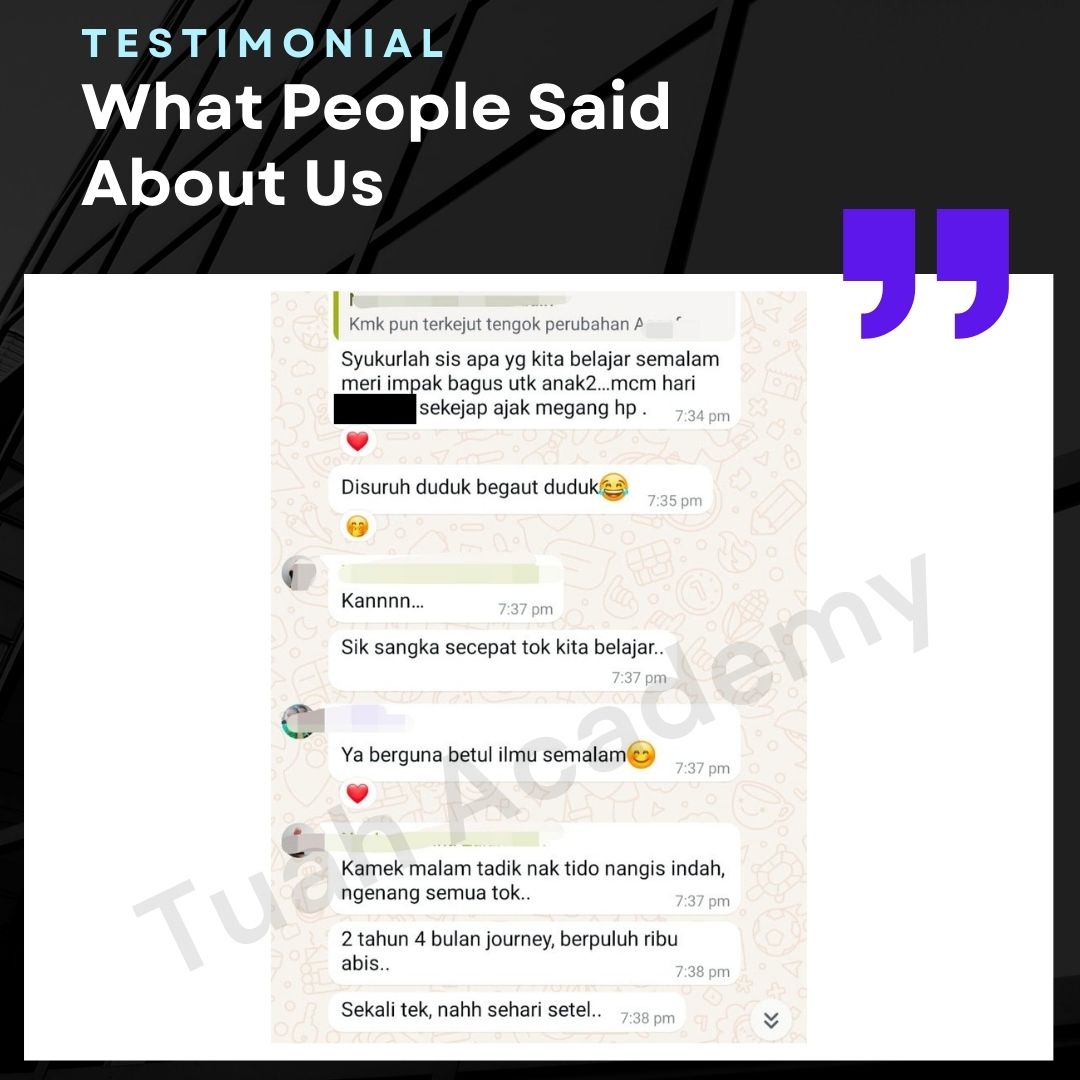 Saya Ingin Berkongsi Testimoni Real Stories, Real Change: Story Ibu Bapa ! Dari keliru kepada yakin, dari buntu kepada bertindak. Ini kisah sebenar ibu bapa yang telah menyertai Tuah Academy dan melihat perubahan dalam anak mereka. Lebih peluang, lebih manfaat Jadi ahli NGO kami. Borang diskaun sehingga 80% Isi di sini!
